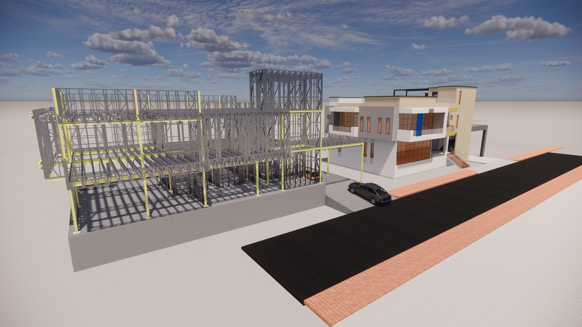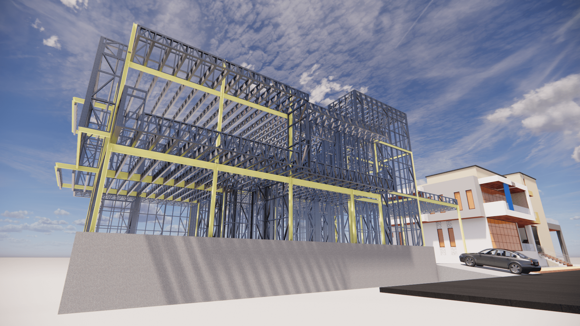 The Ecostructure office building is a testament to modern, sustainable construction practices. Located in the heart of Tiko, in the south-west region of Cameroon, this state-of-the-art office complex is designed to foster a productive and healthy working environment while minimising its environmental footprint. The project combines the durability and flexibility of lightweight steel frames with the environmental benefits of eco-formed concrete, creating a state-of-the-art structure that exemplifies innovative design and sustainability.
